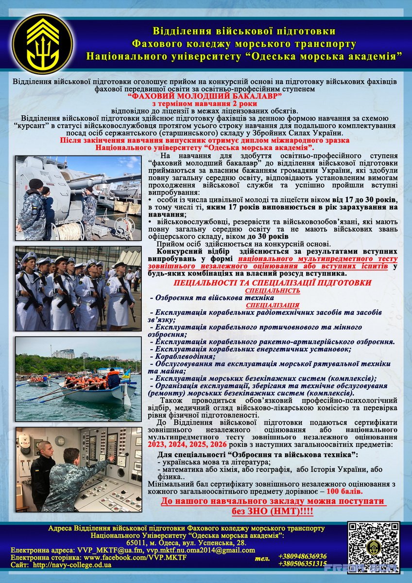 ПРАВИЛА ПРИЙОМУ до відділення військової підготовки Фахового коледжу морського транспорту Національного університету “Одеська морська академія” у 2025 році | |